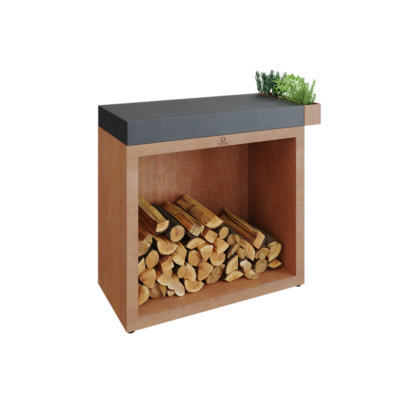 Het OFYR Butcher Block Storage 90 Corten is een ideale aanvulling op de OFYR Classic modellen. Het heeft een robuust werkblad om voedsel op te bereiden en een handige houder voor accessoires. Onder het werkblad is een opslagruimte voor hout. Het snijblok is verkrijgbaar in teakhout en donkergrijs keramiek.